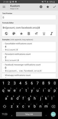 - Chọn 'ni', chọn Facebook messenger notifications count ($ni (pcount, com.facebook.orca)$).