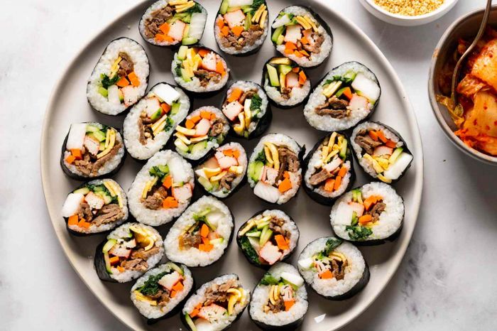 Người Hàn Quốc thường chế biến kimbap để mang theo trong các dịp dã ngoại, sự kiện ngoài trời, hoặc trong các bữa trưa nhẹ. Kimbap thường được ăn kèm với Kimchi, tạo nên bữa ăn ngon miệng và bổ dưỡng. Rong biển, một thành phần quan trọng trong Kimbap, không chỉ thơm ngon mà còn có nhiều lợi ích cho sức khỏe như ngăn ngừa ung thư, tăng cường chức năng tuyến giáp và cải thiện sức khỏe tim mạch.