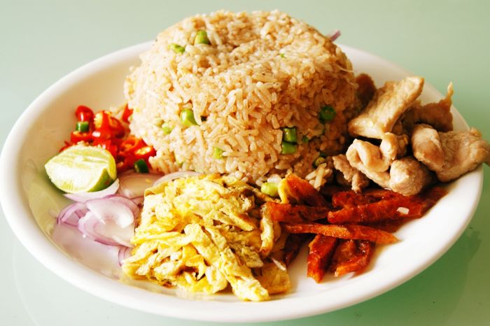 Món cơm này thể hiện sự cân bằng tốt nhất của ẩm thực Thái Lan, kết hợp đủ vị chua, cay, mặn, ngọt trên nền gạo suay - loại gạo thơm mà họ tự hào nhất.
