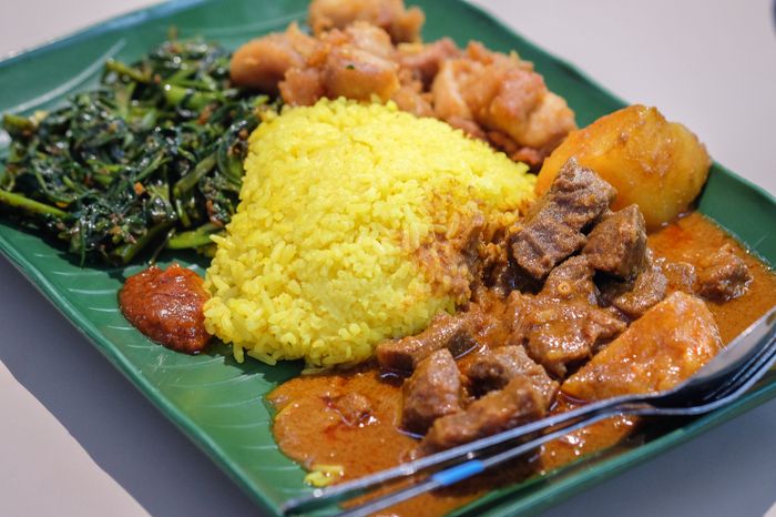 Với người dân Indonesia, gia vị là yếu tố quan trọng nhất khi chế biến thức ăn. Từ hàng rong trên hè phố đến nhà hàng sang trọng, mọi nơi đều có đặc sản Indonesia nấu công phu. Vị cay nồng, vị mặn và vị ngọt gắt là điều phổ biến, đặc trưng cho ẩm thực nơi đây. Món cơm cà ri cũng không ngoại lệ, với lớp sốt đỏ rực bao phủ tạo nên hương vị đặc trưng. Nguyên liệu đa dạng như cơm, thịt bò, cánh gà, tôm nõn, cà rốt, sả và nhiều gia vị khác hòa quyện, tạo nên một bữa ăn đặc sắc khó cưỡng.