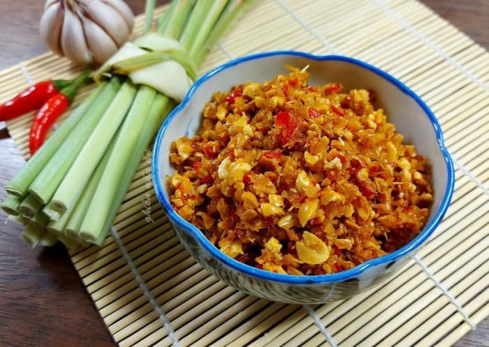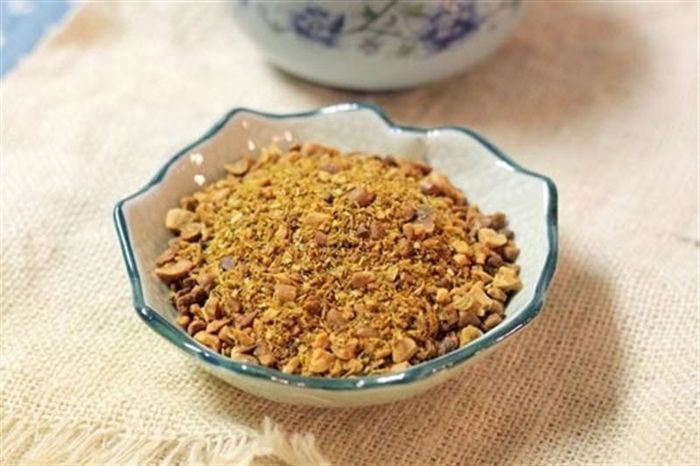 - Lạc rang chín, xát bỏ vỏ lụa bên ngoài, giã thô.
