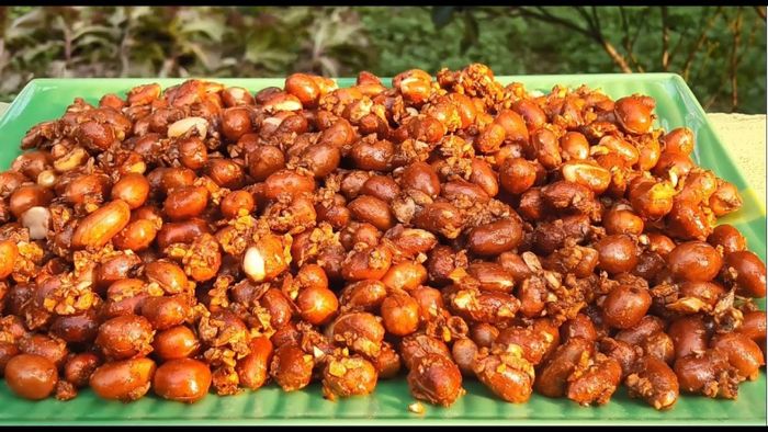 - Trộn đều để đường bám quanh lạc và thưởng thức.