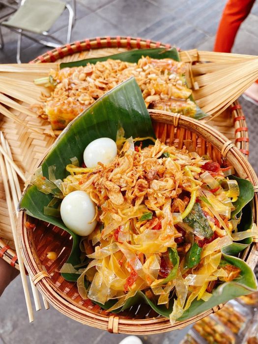 Chắc chắn các bạn trẻ không thể bỏ qua sức hấp dẫn của món bánh tráng trộn này. Bánh tráng cắt nhỏ, trộn cùng xoài, bò khô, rau thơm, trứng cút, mực khô, ớt bột, nước cốt chanh, rắc thêm đậu phộng rang trộn đều để sốt thấm vào bánh tráng là bạn đã có thể thưởng thức đĩa bánh tráng trộn ngon chuẩn vị Sài thành rồi. Bánh tráng trộn ở đây rất phong phú với bò khô, xoài, một đĩa đầy ắp với giá lại vô cùng hấp dẫn, là điểm hẹn lý tưởng của học sinh, sinh viên thích thưởng thức ẩm thực vỉa hè.