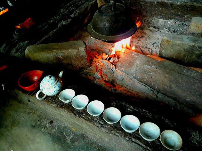 Trà trong quán không nhiều, cũng không đặc biệt nhưng vẫn thu hút nhiều người. Đó chính là vẻ đơn giản, mộc mạc ấy. Trà được pha trên bếp lửa hồng hào như ngày xưa bà, mẹ thường hay pha. Đôi khi, làn khói nhẹ nhàng bay lên làm cay đôi mắt. Đó có thể là khói từ bếp hoặc đơn giản chỉ là tâm hồn muốn rơi lệ khi nhớ về những kỷ niệm. Quán trà Om có sức mạnh khiến người ta cảm thấy buồn và đồng thời cũng dễ làm họ hạnh phúc. Đó là thành công của một quán trà đặc biệt. Ngồi thư giãn với một chén trà, hòa mình vào những kí ức ngọt ngào, lắng nghe những câu chuyện nhỏ từ những người yêu trà khác, đều khiến trái tim nhẹ nhàng biết bao.