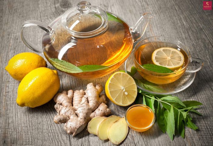 - Đun gừng với nước lọc, sau đó đổ nước gừng ra cốc, thêm mật ong và nước cốt chanh, khuấy đều.