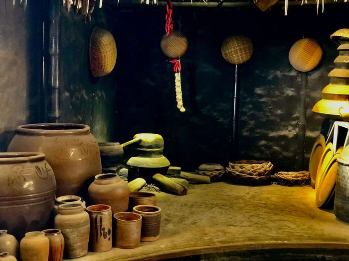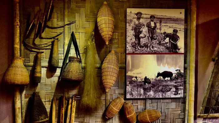 The third floor also features an exhibition space showcasing the cultural aspects of rural homes and lifestyles in the North-Central-South regions. This room stands out with traditional handicrafts, pottery items, and agricultural tools.