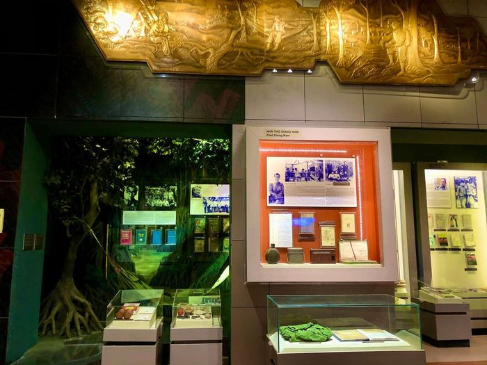 Exhibition space dedicated to writer Anh Duc, a native of An Giang province, hiding in the Cà Mau forest fighting alongside comrades and creating immortal works