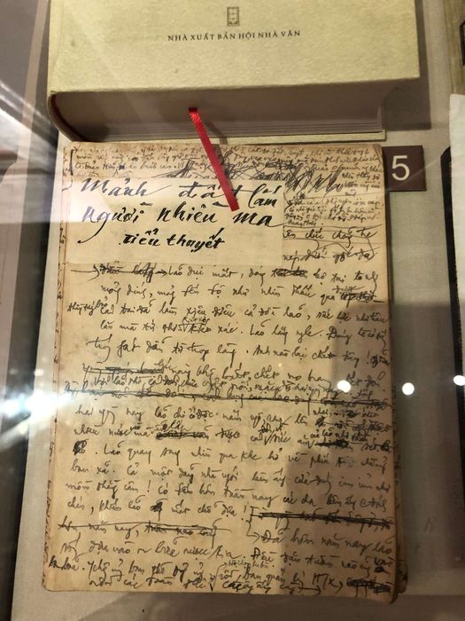 Handwritten manuscript of the novel 'A Land with Many People and Many Ghosts' by writer Nguyen Khac Truong, depicting the shortcomings of rural Vietnam