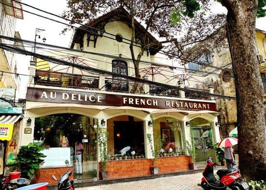Au Delice, a French eatery, stands out with its architecture reminiscent of classical French elegance, situated on Ngô Thì Nhậm Street. The establishment boasts two floors, each meticulously adorned with white tablecloths and sophisticated wooden furniture. The second floor features a balcony overlooking the church, offering a romantic view of the street below, especially enchanting at night. Au Délice's menu is always rich with a diverse array of imported foods, including various meats, cheeses, cold cuts, and a plethora of European wines.