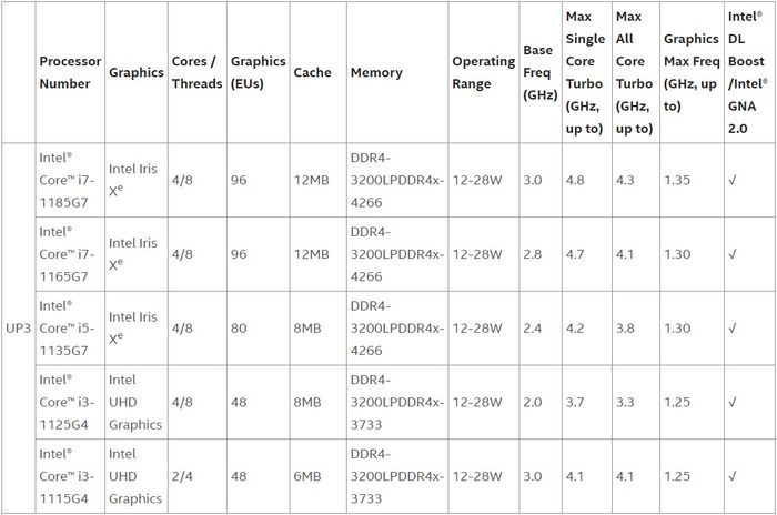 Intel đã thông báo có hơn 150 mẫu laptop sử dụng vi xử lý Intel Core thế hệ 11 từ các đối tác như Acer, ASUS, Dell, HP, Dynabook, Lenovo, LG, Samsung, MSI, Razer ... và các sản phẩm này sẽ được tung ra thị trường từ bây giờ đến cuối năm.