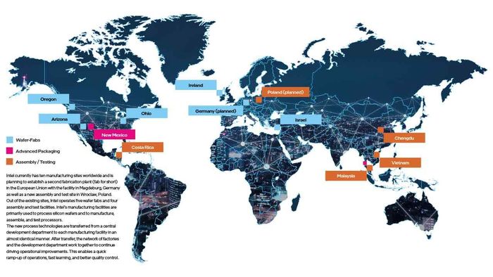 Intel’s manufacturing locations around the world. Credit: IntelIntel không tiết lộ chính xác chính phủ Ba Lan đang đóng góp bao nhiêu tiền cho dự án. Tuy nhiên, nó nói trong một buổi thông tin báo chí rằng, “như ở tất cả các địa điểm nơi nó hoạt động, Intel sẽ theo đuổi các ưu đãi phù hợp để đảm bảo rằng hoạt động của mình cạnh tranh toàn cầu”.