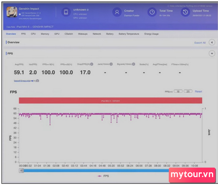 Đặc biệt, các kết quả kiểm tra từ nhiều nguồn cũng xác nhận rằng iPad Mini 6 chơi Genshin Impact rất mượt mà ở tốc độ khung hình 60 FPS, đôi khi giảm nhẹ nhưng vẫn duy trì trên mức 40. Điều này là một thành công đáng chú ý so với iPad Mini 5 tiền nhiệm thường giảm xuống dưới 30 FPS và ít khi duy trì ở mức 60 FPS, dao động từ 30-50.