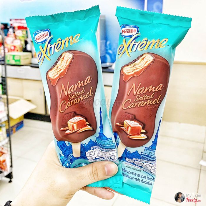 Tên sản phẩm: Kem que NESTLÉ EXTREME NAMA SALTED CARAMELGiá bán: 19,000đ/câyĐịa điểm bán: Mọi cửa hàng tiện lợi và Vinmart+ trên toàn quốc#trannumy