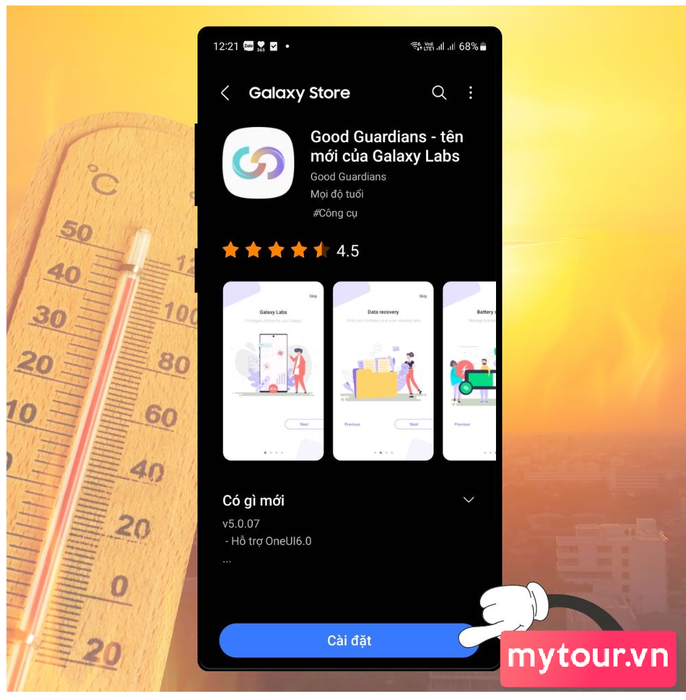 Bước 1: Tải và cài đặt ứng dụng Good Guardians từ Galaxy Store. Truy cập Galaxy Store trên điện thoại Samsung, tìm Good Guardians, và nhấn Tải về hoặc Cài đặt. Bạn cũng có thể tải Good Guardians cho Samsung Galaxy tại đây.