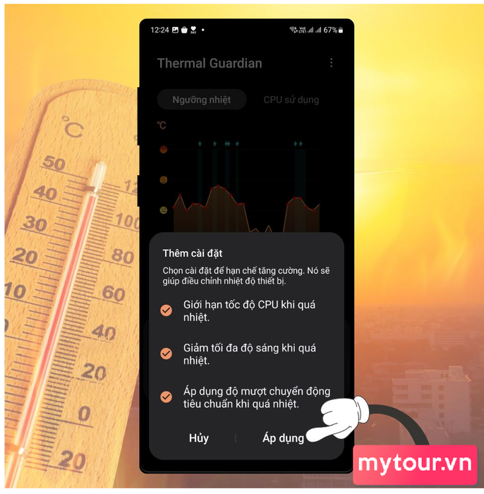 Bước 5: Màn hình sẽ hiển thị 4 tùy chọn giúp điều chỉnh nhiệt độ thiết bị. Bật tất cả 4 cài đặt và nhấn Áp dụng.