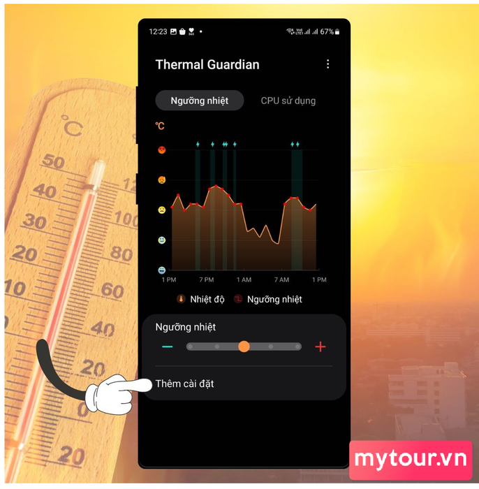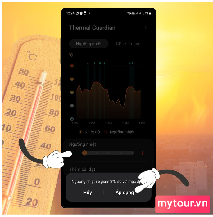 Bạn cũng có thể điều chỉnh nhiệt độ ngay lập tức bằng cách kéo thanh Ngưỡng nhiệt xuống 1-2 mức, sau đó nhấn Áp dụng. Phương pháp này có thể không giảm nhiệt độ quá nhiều, nhưng hữu ích trong trường hợp cần giảm nhanh.