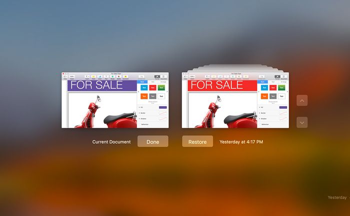 - Nếu muốn lưu bản cũ thành file mới, giữ nút Option và nhấn Restore a Copy. File mới sẽ hiển thị trong cửa sổ mới để bạn lưu lại.