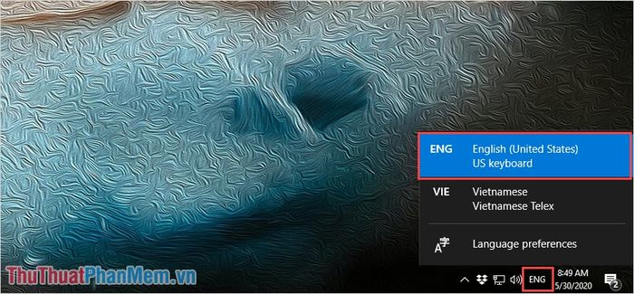 Bạn nhấn vào biểu tượng Ngôn ngữ trên thanh Taskbar và chuyển sang English (United States).