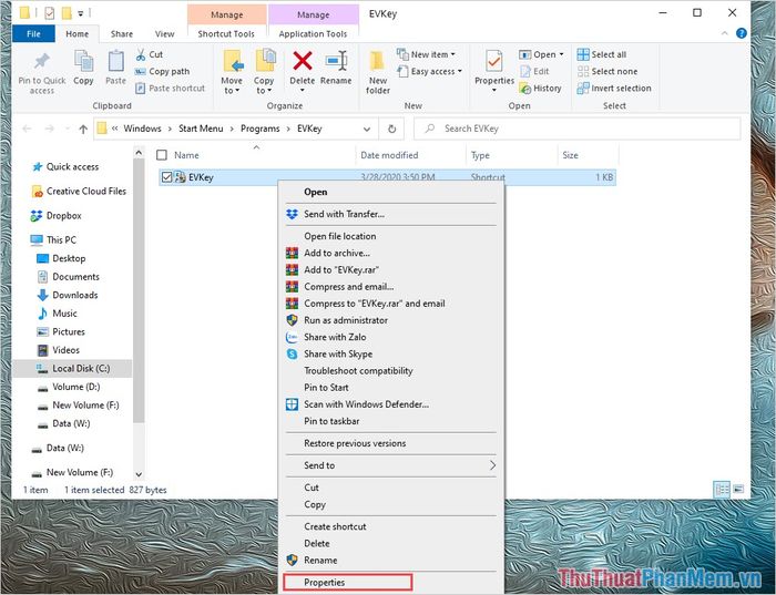 Bước 2: Sau đó, bạn Click chuột phải vào biểu tượng ứng dụng và chọn Properties.