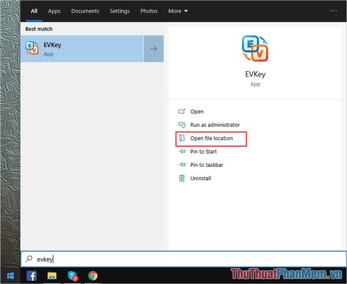 Bước 1: Bạn mở MenuStart, nhập tên bộ gõ tiếng Việt bạn đang dùng và chọn Open file location.