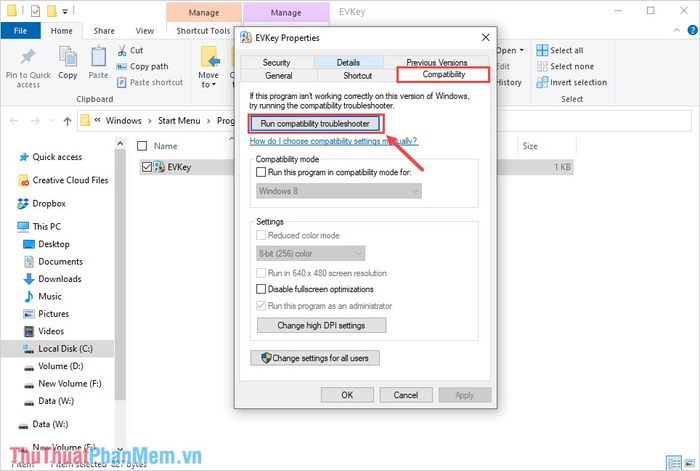 Bước 3: Tiếp theo, bạn nhấp vào Compatibility và chọn Run compatibility troubleshooter để khởi động công cụ sửa lỗi.