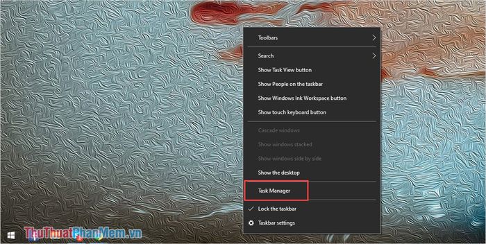Bước 1: Bạn Click chuột phải vào thanh Taskbar và chọn Task Manager.
