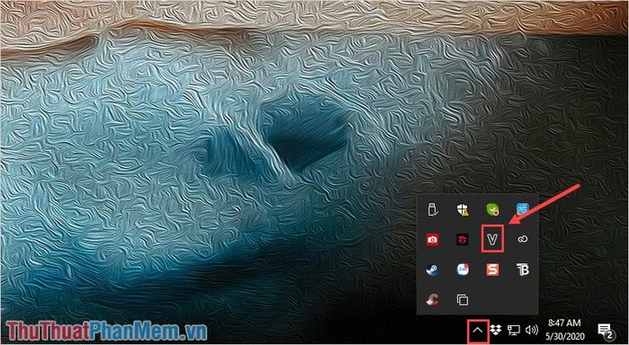 Bước 1: Bạn bắt đầu bằng cách mở mục Mở rộng trên thanh Taskbar và kích đúp vào biểu tượng của Bộ gõ tiếng Việt.