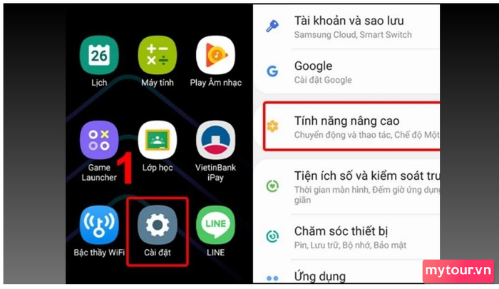 Bước 1: Bắt đầu bằng cách mở phần Cài đặt trên chiếc điện thoại của bạn. Tại đây, hãy lựa chọn 'Tính năng nâng cao'.