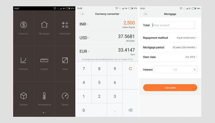 Trong MIUI 8, Xiaomi cho phép bạn thực hiện các phép tính phức tạp và hỗ trợ chuyển đổi đơn vị tiền tệ một cách linh hoạt