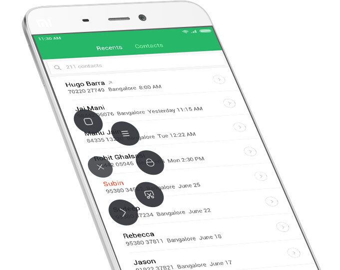 Theo mặc định, công cụ này mang đến 5 thao tác nhanh thay thế: nút Home, nút đa nhiệm, khóa màn hình, chụp ảnh màn hình và nút back. Nhưng trên MIUI 8, bạn có thể tùy chỉnh thêm nhiều chức năng cho những phím này, kể cả các ứng dụng bên thứ ba.