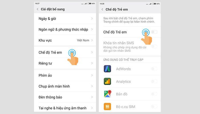 Nếu bạn thường xuyên cho trẻ nhỏ sử dụng điện thoại (hoặc người thân thích sáng tạo), bạn có thể hạn chế các ứng dụng mà họ có thể truy cập. Bật tính năng này bằng cách vào “Cài đặt (Settings)” > Cài đặt bổ sung (Additional settings)> Chế độ trẻ em (Child Mode).