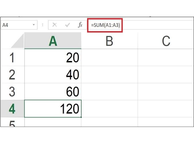 Ví dụ: Nếu bạn sử dụng hàm như sau: =SUM(20, 40, 60), điều này có nghĩa là bạn đang cộng các số lại với nhau và kết quả sẽ là 120.