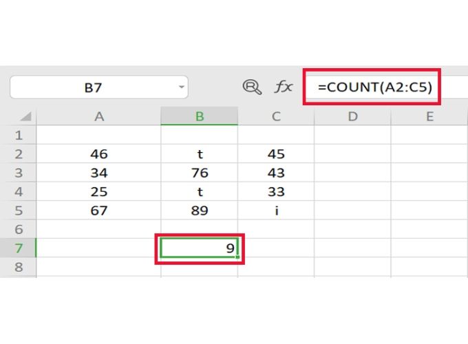 Ví dụ: Để tìm số lượng ô trong vùng dữ liệu chứa giá trị số, bạn có thể sử dụng công thức như sau: =COUNT(A2:C5). Kết quả sẽ là tổng số lượng ô có giá trị số trong vùng dữ liệu đã chọn.
