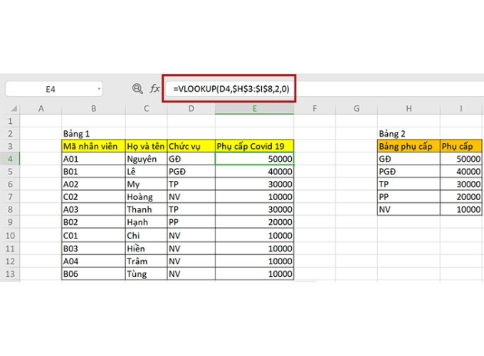 Giải thích công thức VLOOKUP: