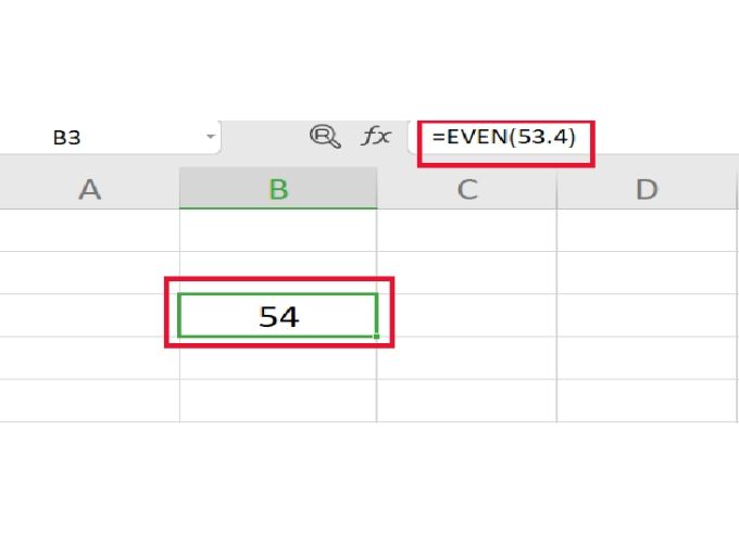 Ví dụ: Để làm tròn số 53.4 đến số nguyên chẵn gần nhất, bạn có thể sử dụng công thức: =EVEN(53.4). Kết quả sẽ là 54.