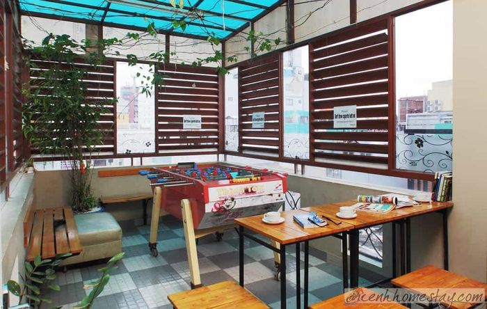 Điểm đặc biệt của La Hostel Saigon chính là không gian xanh mát. Không chỉ có khu vực sân vườn trên tầng thượng, mà ngay từng phòng cũng được trang trí với những chậu cây nhỏ, tạo nên không khí thoải mái và gần gũi với thiên nhiên.