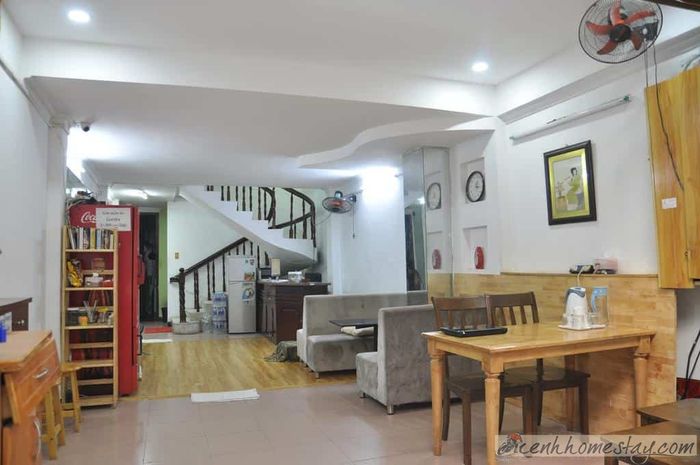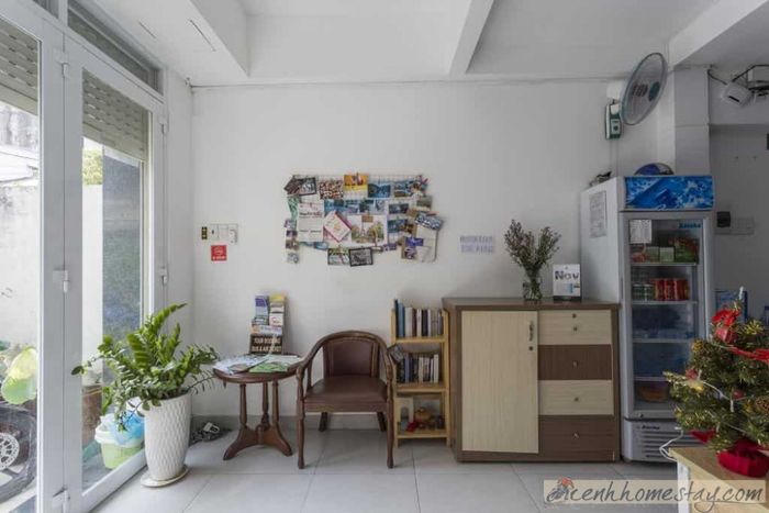 Phòng nghỉ tại hostel có diện tích rộng, bên cạnh không gian nghỉ ngơi, du khách còn được trải nghiệm khu vực sinh hoạt tiện nghi với bàn ghế thoải mái.