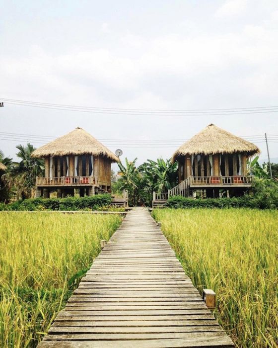 Vieng Tara Villa, một ốc đảo nghỉ dưỡng giữa cánh đồng lúa xanh mát. Ảnh: annikawulms