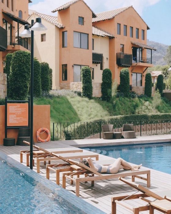 Phòng hướng ra bể bơi trong lành, thư thái ngồi ban công ngắm mặt nước lụt lờ khi bình minh. Hình ảnh: stephxelle