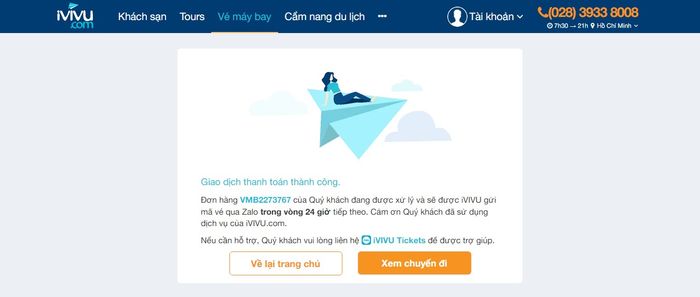 - Xác nhận đặt vé thành công qua Zalo hoặc Email.