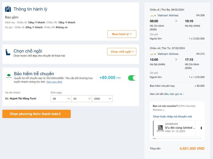 Bước 5: Thanh toán và hoàn tất đặt vé: