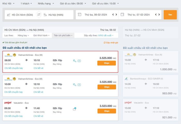 - Nhấn ‘Tìm chuyến bay’ để xem tất cả các lựa chọn.