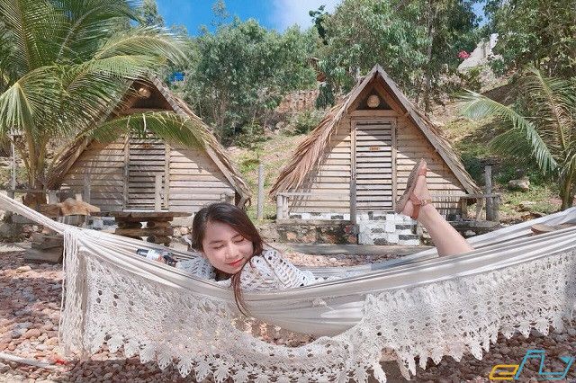 Các phòng nghỉ ở đây được xây dựng từ những nguyên liệu tự nhiên như lá, tre và nứa, tạo nên không gian sống hài hòa với biển cả. Du khách có thể lựa chọn giữa các loại phòng tập thể dành cho 8 người, phòng đơn hướng biển, hoặc phòng đơn hướng núi. Mức giá phòng phải chăng, dao động từ 150k – 350k thôi đấy!