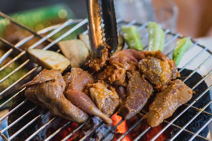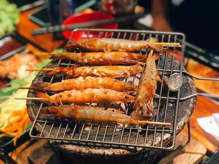 Thịt nướng được tẩm ướp cẩn thận, sau đó xiên trên que và nướng trên bếp than hồng thơm phức. Bạn có thể thỏa sức thưởng thức bữa tiệc thịt nướng với đủ loại như bạch tuộc, bò phô mai, lòng, tôm càng tươi ngon,… Đặc biệt, nước sốt đa dạng và đậm đà làm tăng thêm hương vị cho xiên thịt nướng.
