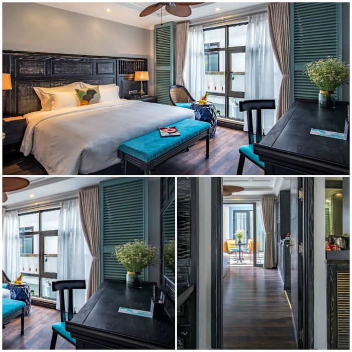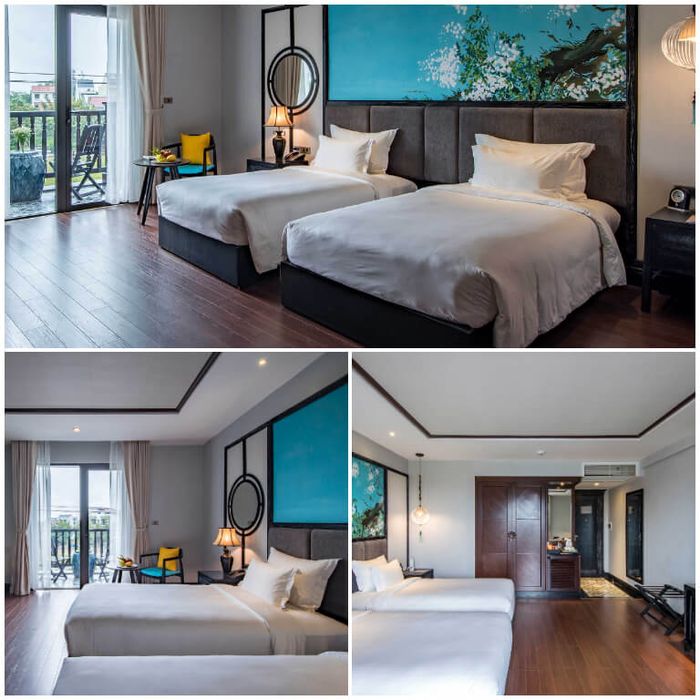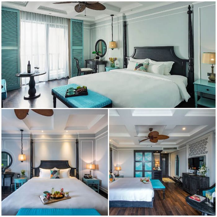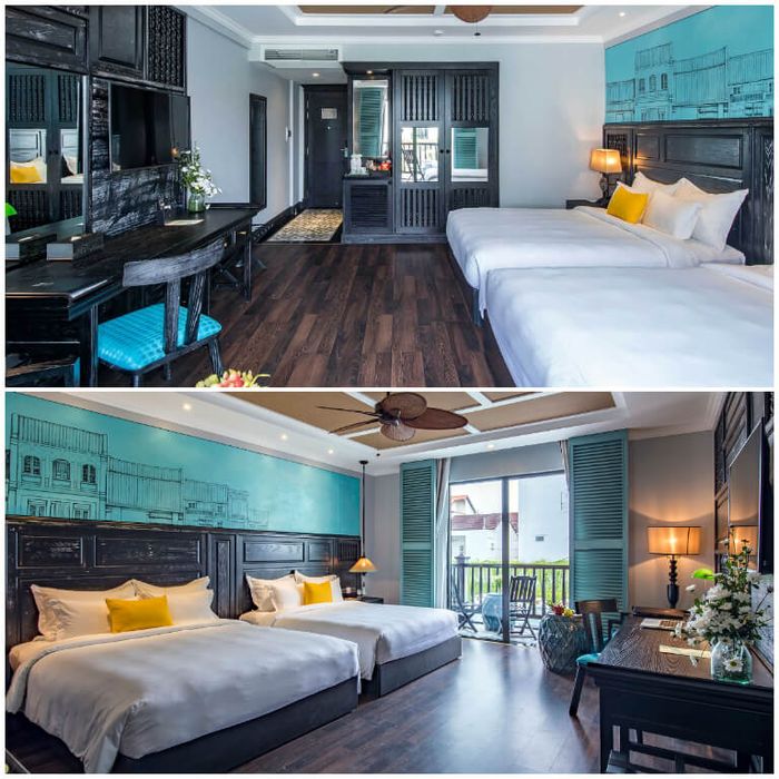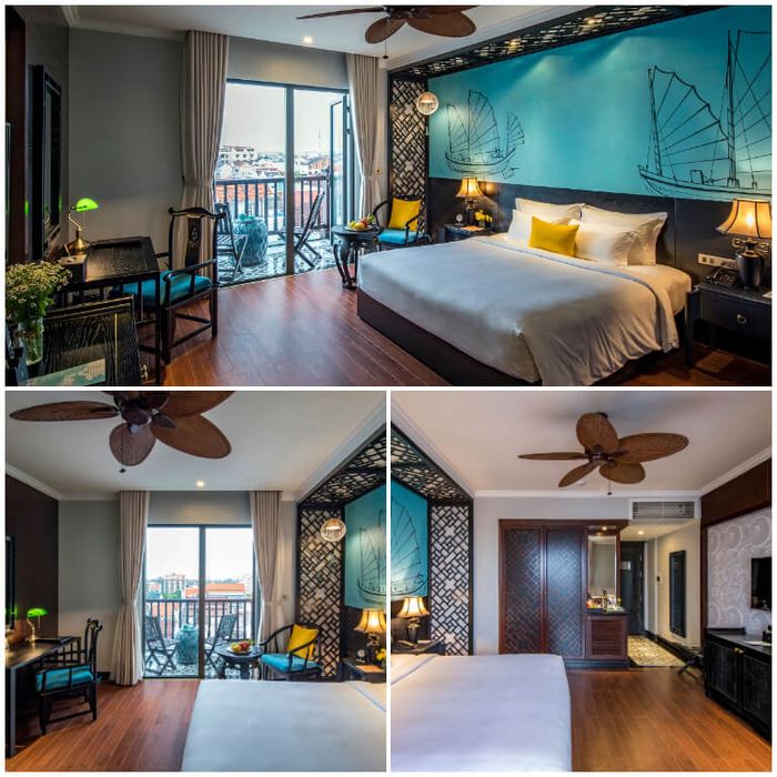 Điểm đặc biệt của phòng này là tầm view. Ngay khi bước vào, du khách sẽ ngay lập tức trải nghiệm vẻ đẹp của kiến trúc mô phỏng thuyền Trung Quốc, một đối tác giao thương quan trọng của Hội An thời xưa. Phòng được trang trí với nội thất gốm sứ cổ điển kết hợp với họa tiết sóng xanh rất hiện đại và độc đáo.