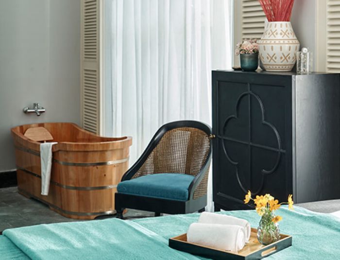 Cung cấp ban công riêng và bồn tắm rộng rãi, tạo không gian thư giãn, yên bình với các tác phẩm gỗ cao cấp và trang trí tinh tế.