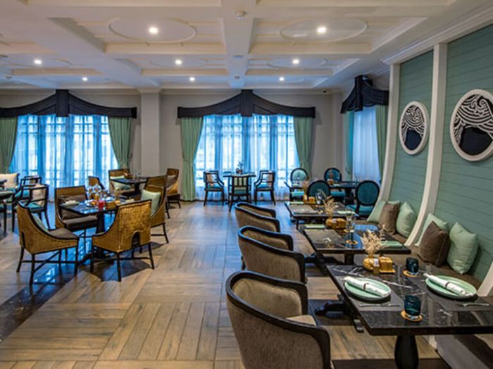 Tiệm cà phê The Café là nơi lý tưởng để du khách thư giãn, đọc sách hoặc tận hưởng không gian yên bình với âm nhạc êm dịu. Nằm ngay trung tâm khách sạn, quán mang đến cảm giác sang trọng và ấm cúng với ghế ngồi hình con thuyền.