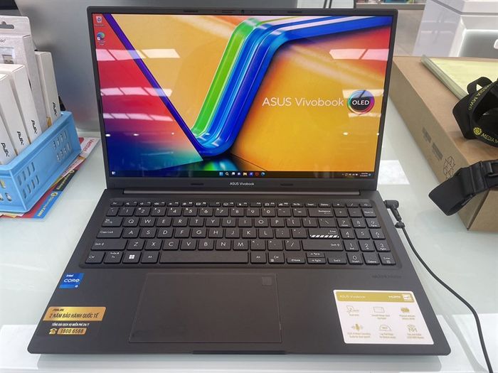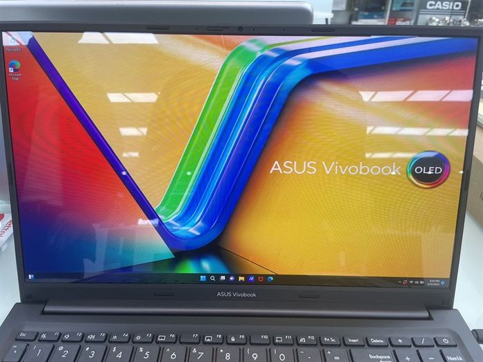 ASUS Vivobook 15 OLED có màn hình rộng 15.6 inch và hiển thị hình ảnh rất sắc nét.Một điểm nổi bật của ASUS Vivobook 15 OLED là màn hình 15.6 inch, cung cấp không gian rộng rãi và hiển thị hình ảnh chân thực với độ chính xác cao. Tấm nền OLED đạt chuẩn 100% DCI-P3 giúp tái tạo hình ảnh với màu sắc chính xác nhất.