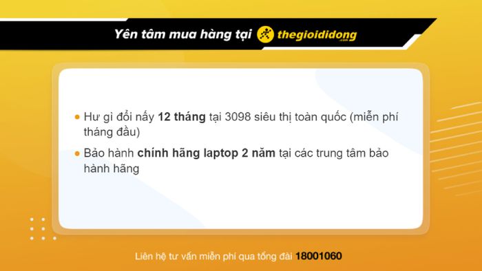 - Bảo hành 12 tháng, hư gì đổi nấy, tại 3077 siêu thị trên toàn quốc (miễn phí trong tháng đầu).