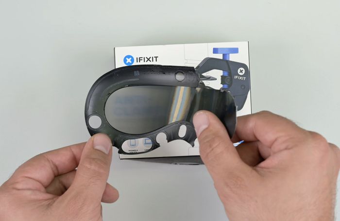 Khi tháo tới phần mặt trong, phần hốc mắt này được kết nối với khung kính bằng các ngàm nhựa, không cần sử dụng keo, chỉ cần một chút nhẹ nhàng là có thể tháo ra.